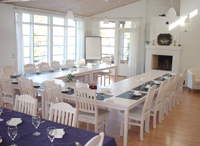 Ikkunoista avautuva laaja merinäköala ja ympärillä oleva koskematon ja karu saaristoluonto yhdessä valoisan sisutuksen kanssa luovat viihtyisät puitteet kokoukselle tai juhlaan.